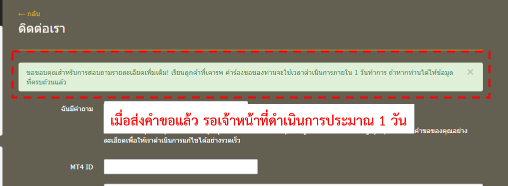เมื่อสำเร็จจะมีข้อความขอบคุณ และให้รอเจ้าหน้าที่ดำเนินการภายใน 1 วัน